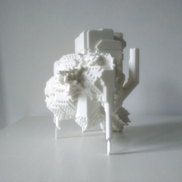 Physical production of the output objects is outsourced to a professional 3D printing service. Models are uploaded and orders placed entirely automatically by the system, with no human oversight or intervention.