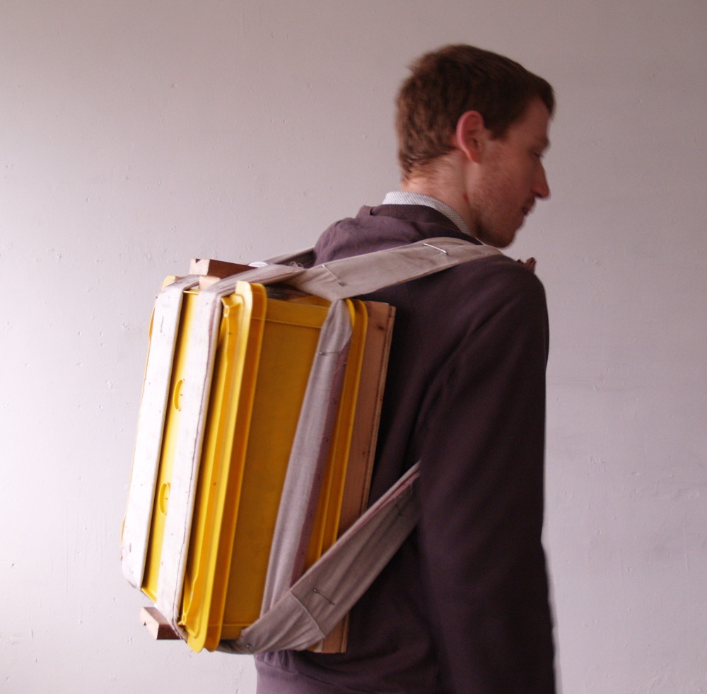 I built the backpack with the intention of taking it to work at other people’s houses – I wanted to find a way of bringing social possibilities in to my rather lonely life.